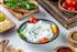 Bulgur pilavı, közlenmiş domates, közlenmiş biber, mevsim salata, yeşillik, soğan